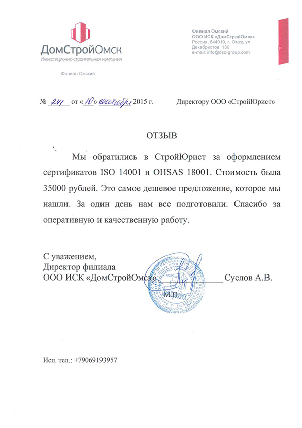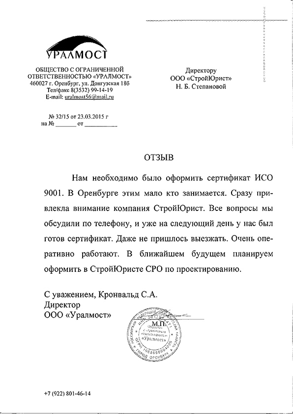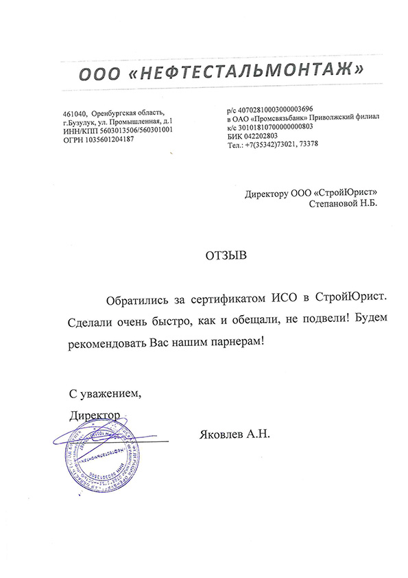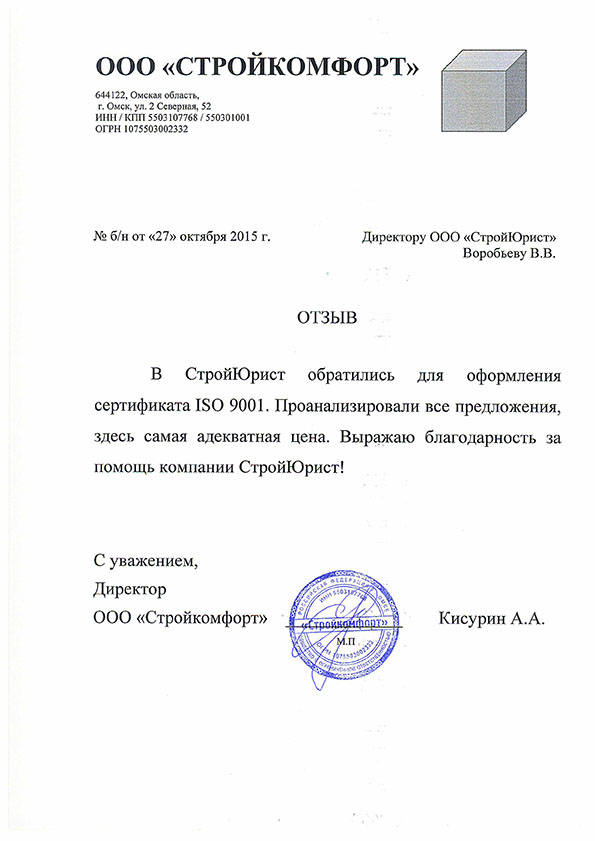 Отзывы клиентов "СтройЮрист" по ISO в Глазове
