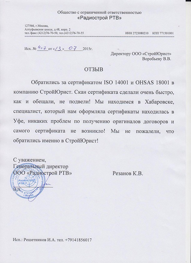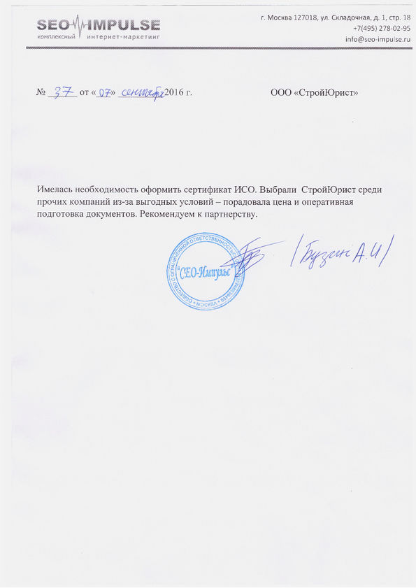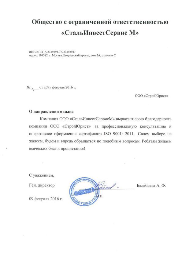 Отзывы клиентов "СтройЮрист" по ISO в Глазове