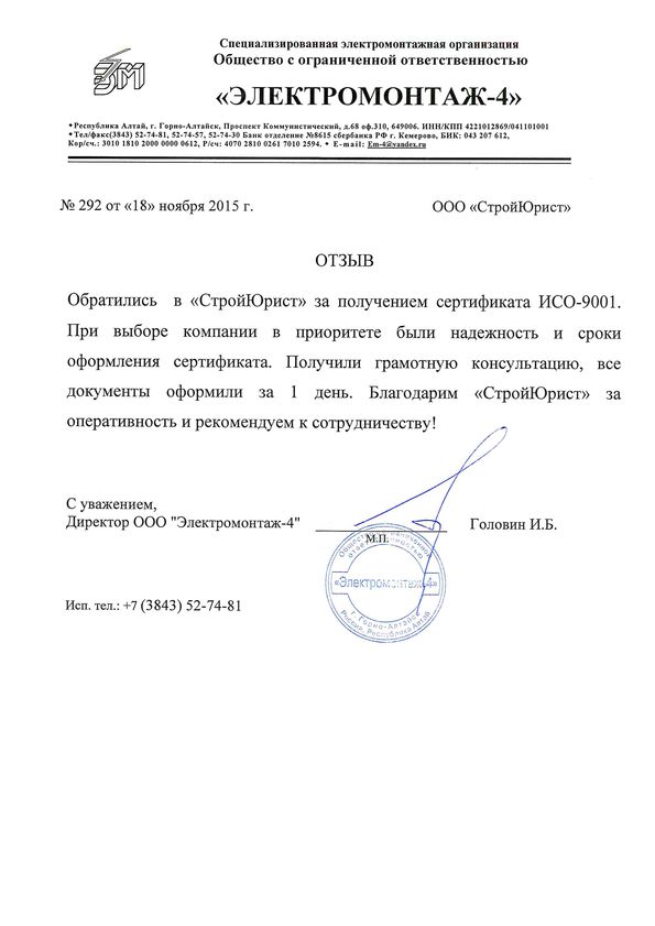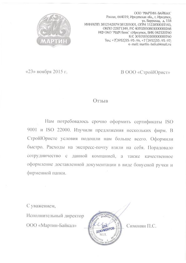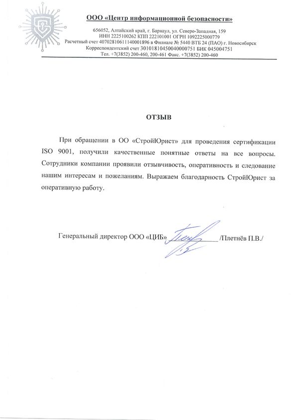 Отзывы клиентов "СтройЮрист" по ISO в Глазове