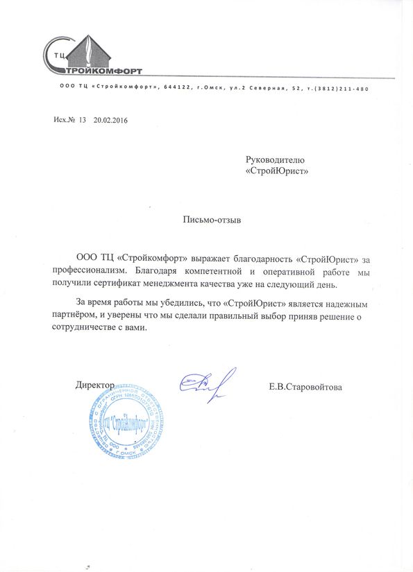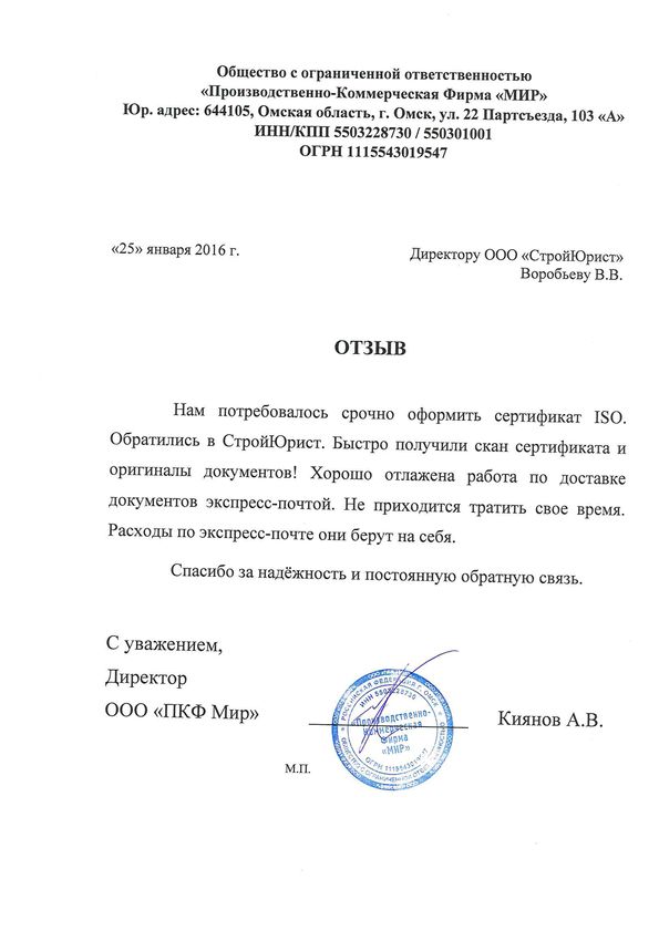 Отзывы клиентов "СтройЮрист" по ISO в Глазове