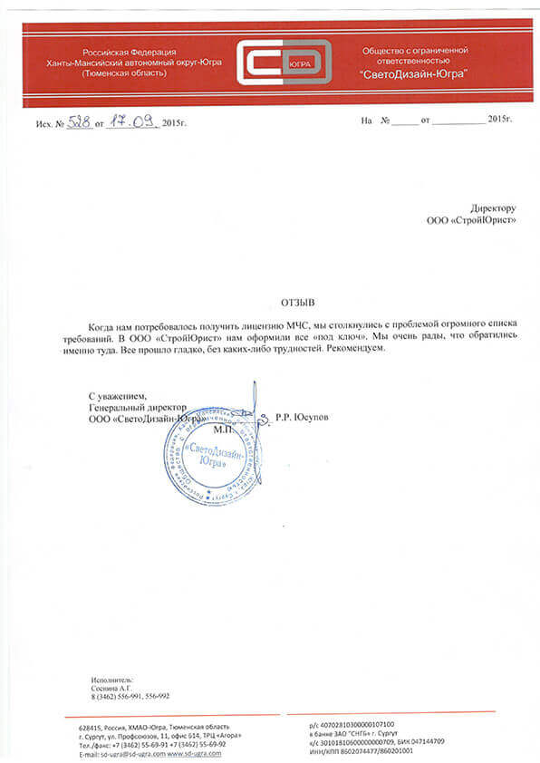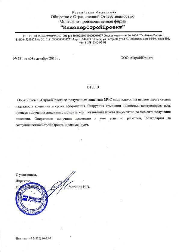 Отзывы клиентов "СтройЮрист" по лицензированию МЧС в Глазове
