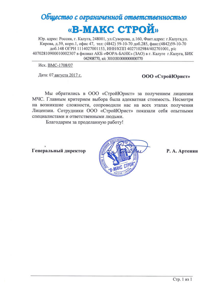 Отзывы клиентов "СтройЮрист" по лицензированию МЧС в Глазове