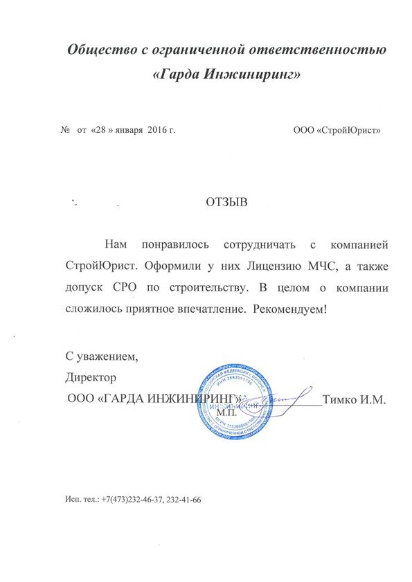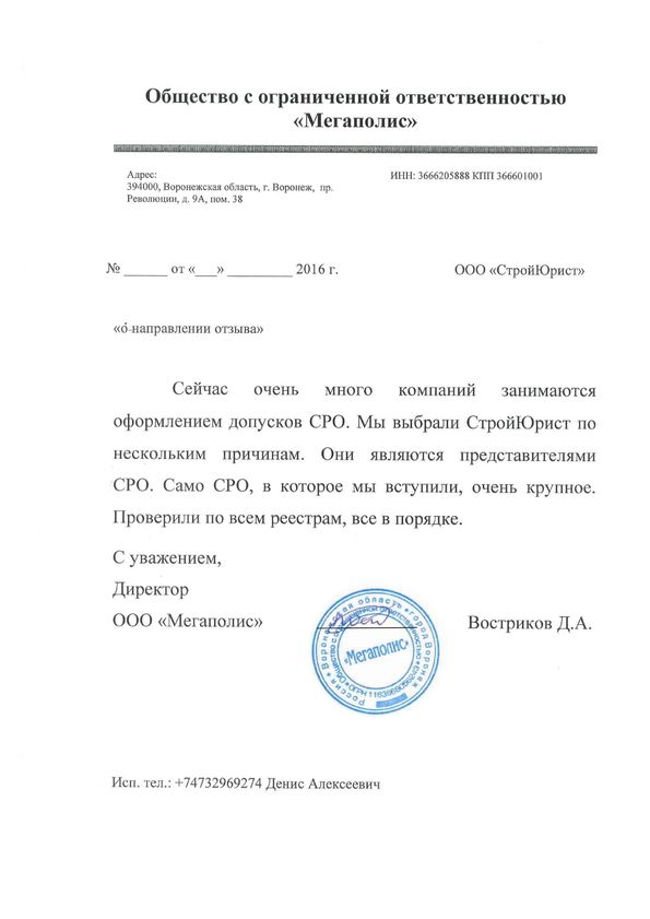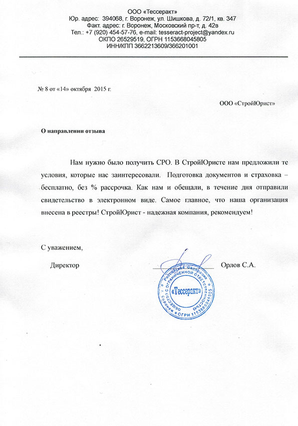 Отзывы клиентов "СтройЮрист" по вступлению в СРО в Глазове