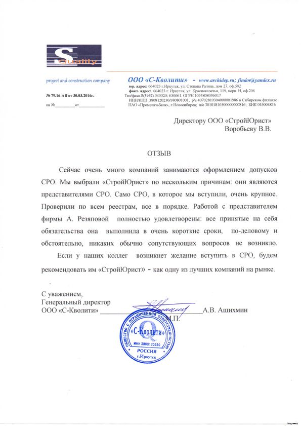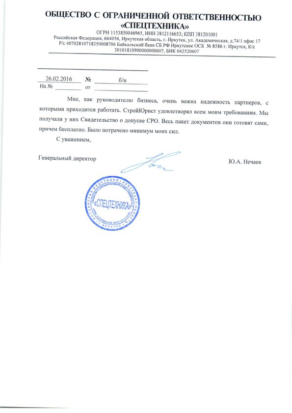 Отзывы клиентов "СтройЮрист" по вступлению в СРО в Глазове