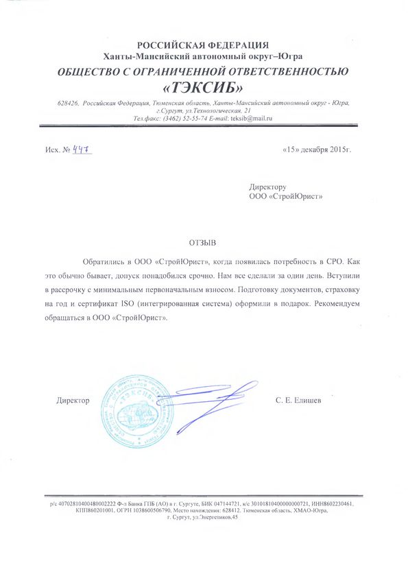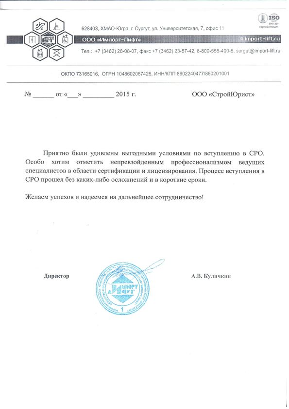 Отзывы клиентов "СтройЮрист" по вступлению в СРО в Глазове