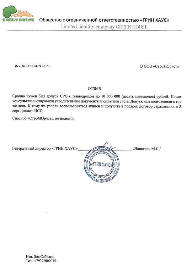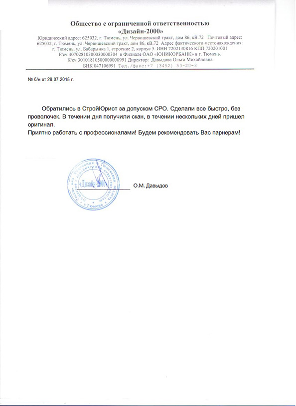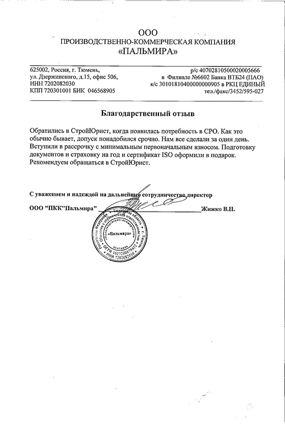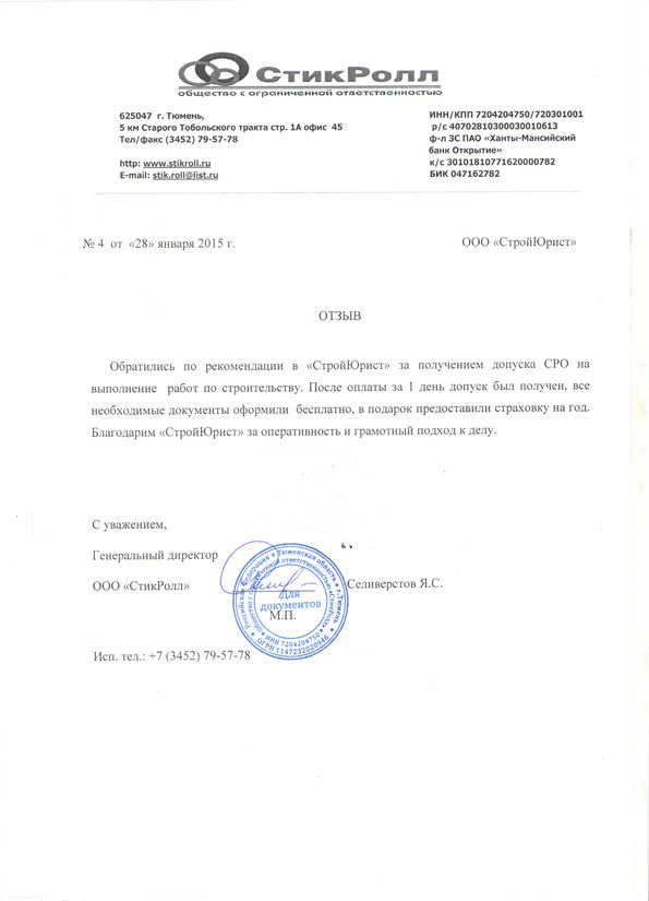 Отзывы клиентов "СтройЮрист" по вступлению в СРО в Глазове