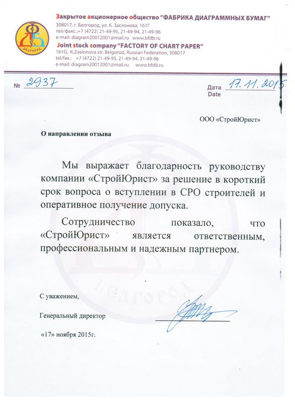 Отзывы клиентов "СтройЮрист" по вступлению в СРО в Глазове