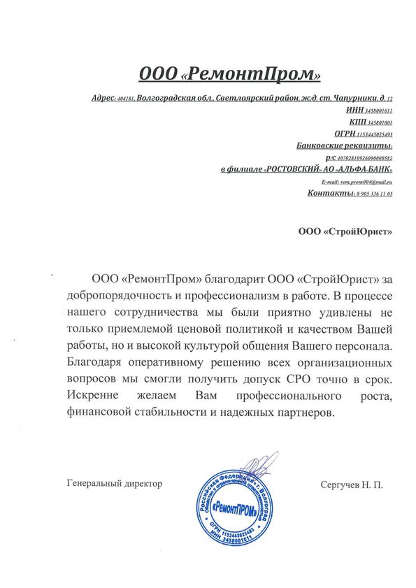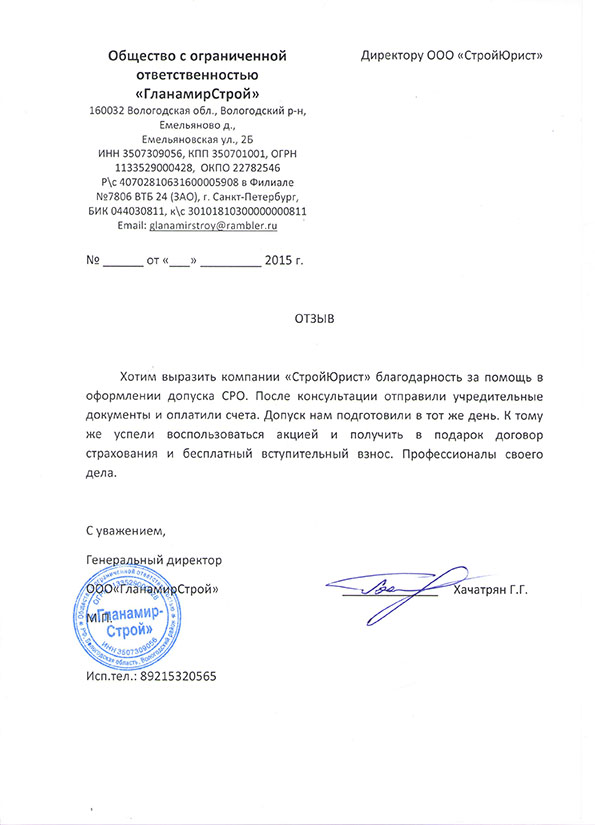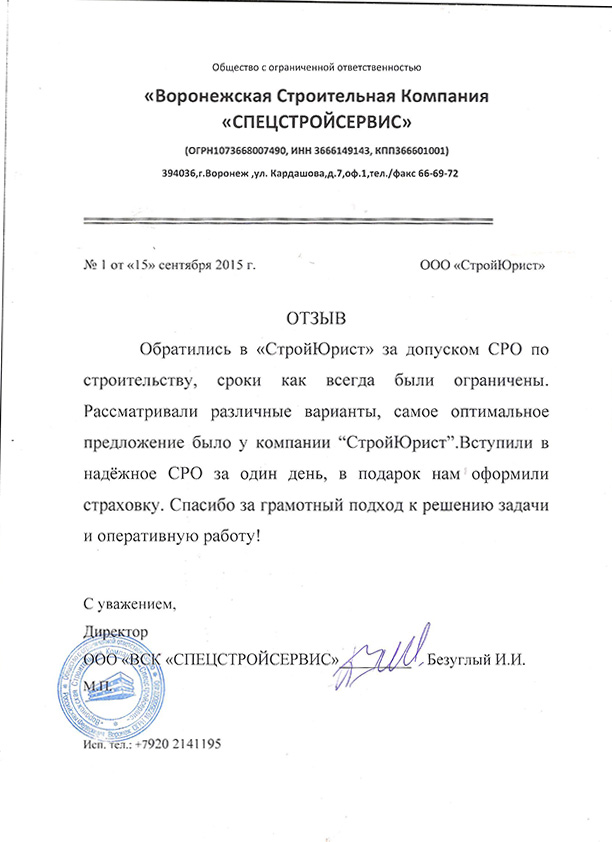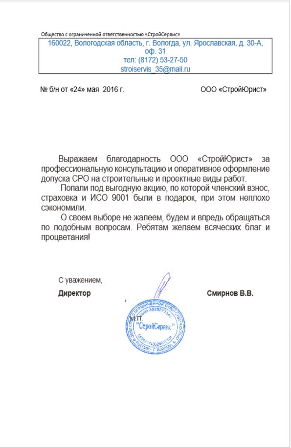 Отзывы клиентов "СтройЮрист" по вступлению в СРО в Глазове